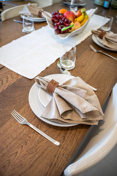 Just beside the lounge is the dining area, centred around a wooden table that seats up to six. It’s a great spot for shared meals, quiet breakfasts, or simply planning your day in Dubai.