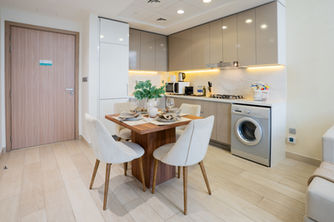 Step out onto the balcony, furnished for your comfort, and enjoy open views over the Azizi neighbourhood—ideal for quiet mornings or peaceful nights.